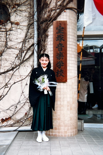 小村:実は私も母が宝塚出身で小さな頃から憧れを抱いていました。私は歌が大好きで幼少期からピアノを習いつつ、いつか自分は歌を歌える場所に行きたいと考えるようになりました。その時自然と母がかつていた宝塚に行きたいと考えるようになりました。最初母が大反対をしまして大学に進学してほしいと言われましたが父が許してくれまして受験を決めました。