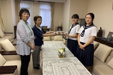 同窓会からは昨年に引き続き、練習に熱心に取り組んでこられた在校生全1,038名と、陰になり日向になりご指導くださいました先生方109名の皆様に、応援と感謝の気持ちをこめて「白百合学園同窓会」の熨斗紙を貼付した校章入りのどら焼きを贈呈いたしました。