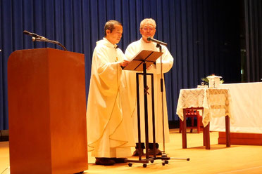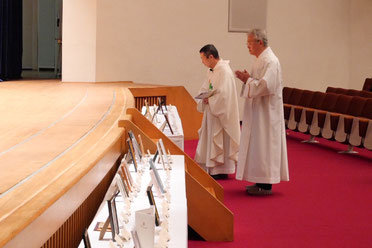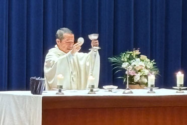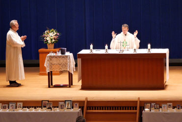 2025年11月6日13時30分より、白百合学園講堂にて、カトリック神田教会主任司祭 立花昌和神父様司式による追悼ミサが執り行われました。侍者は玉川雅邦先生がお務めくださいました。